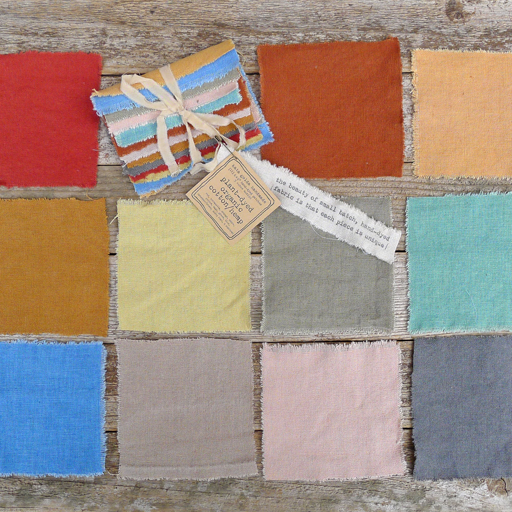 4" squares: plant-dyed 9oz organic cotton/hemp muslin
