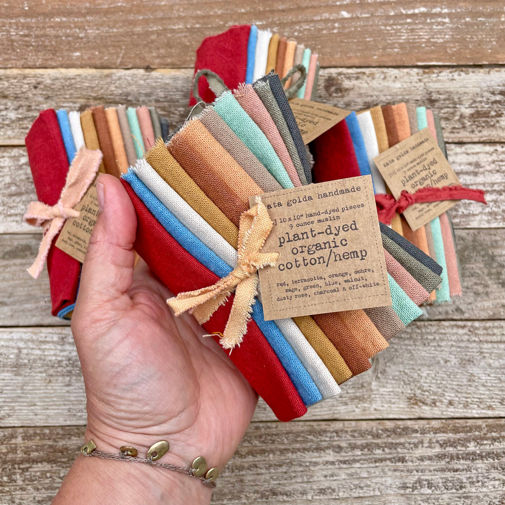 10" squares: plant-dyed 9oz organic cotton/hemp muslin