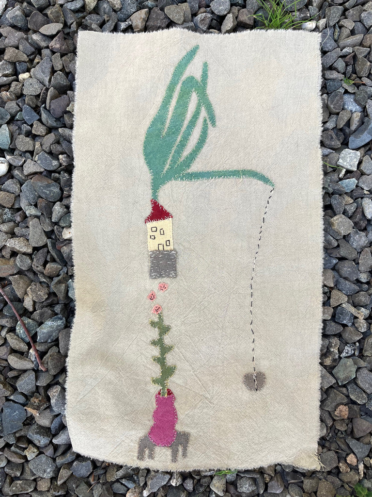 Bring the beauty of Kata Golda’s plant-dyed fabrics to your own craft projects. Each bundle contains (11) 10” squares of plant-dyed 5oz organic cotton/hemp muslin. This fabric is perfect for quilting projects. I have included some images of the applique quilts that I made using this fabric.