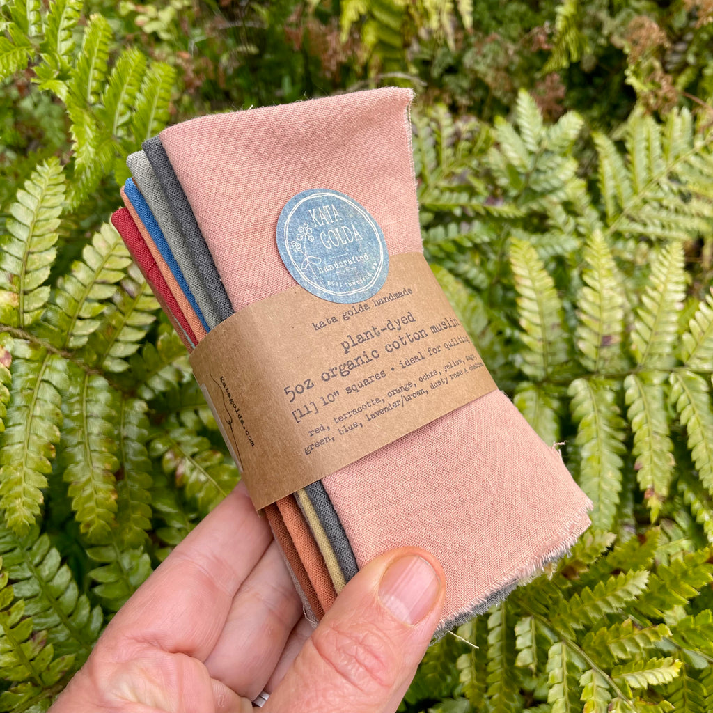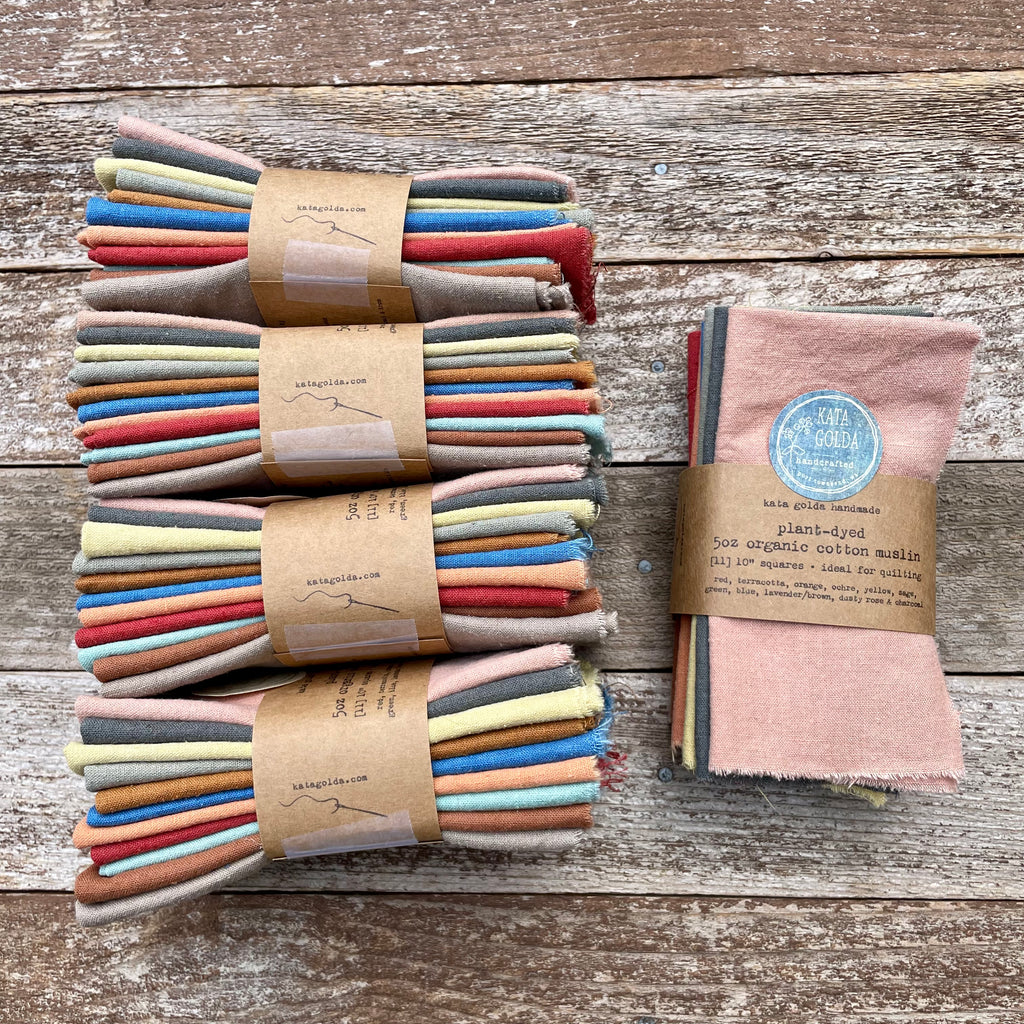 10" squares: plant-dyed 5oz organic cotton/hemp muslin