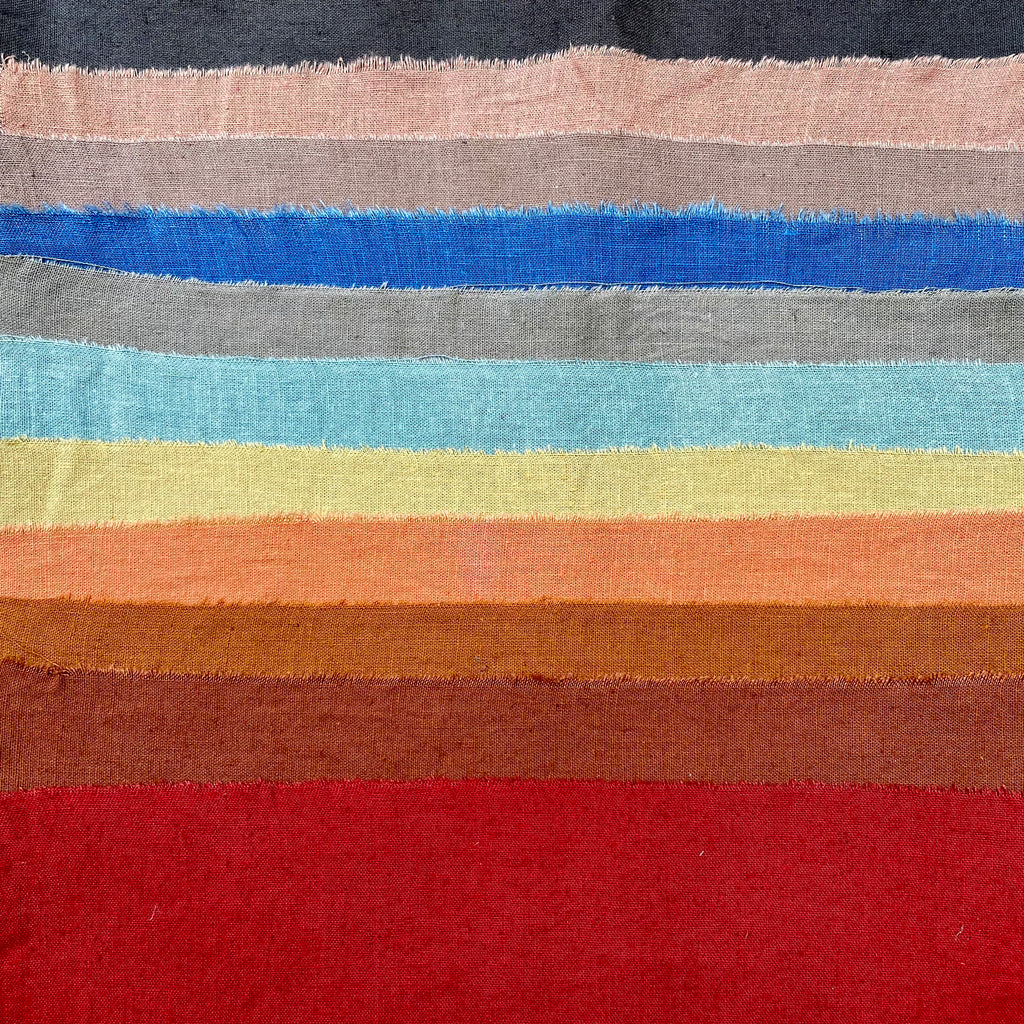 Our textiles are hand dyed by Botanical Colors in a way that is mindful of water use, is non-toxic and biodegradable, and draws its incomparable color palette from humble plants and natural sources. The outcome is a beautifully nuanced collection of ethically produced textiles.  Each batch of dyed fabric is unique, adding character to each piece that is created with it.