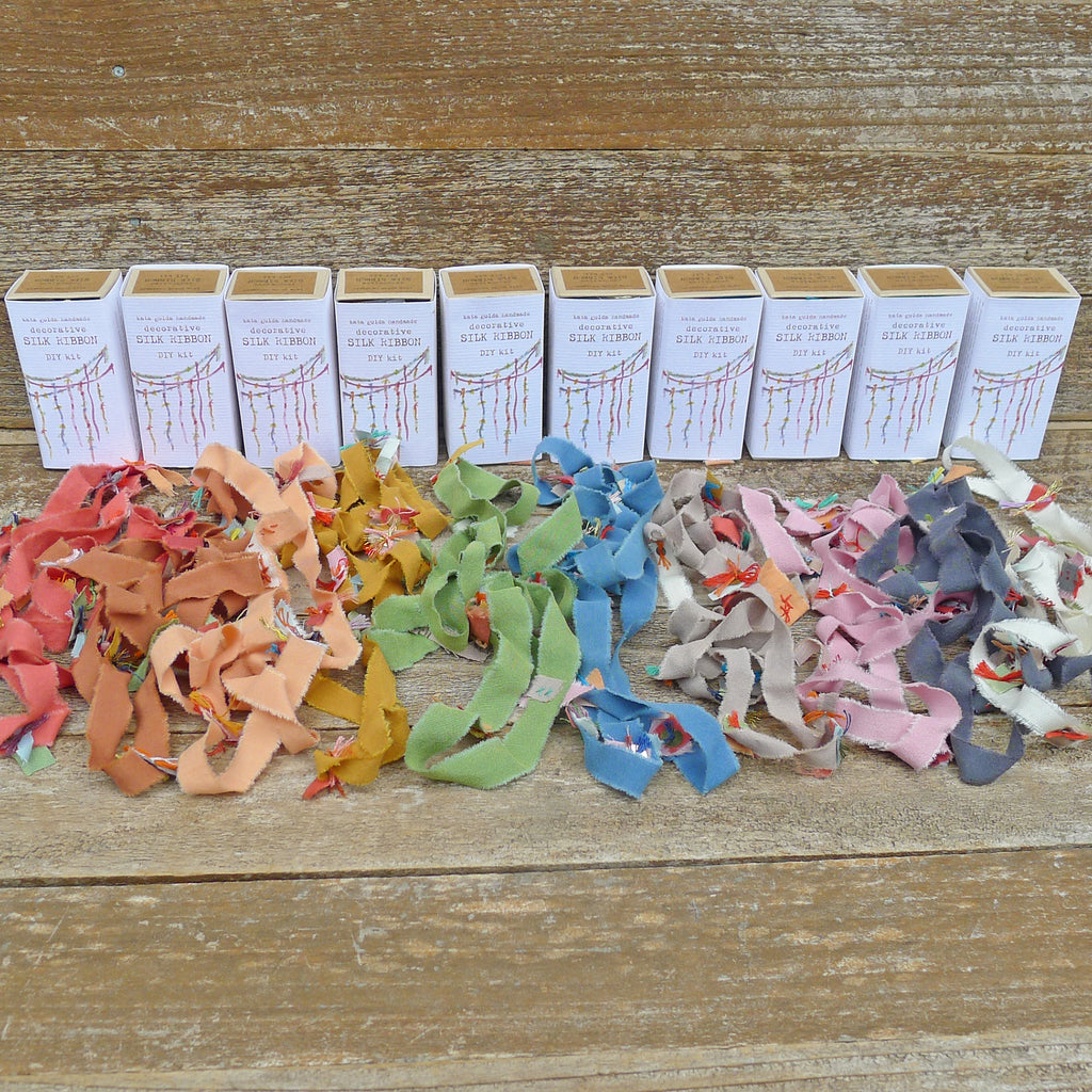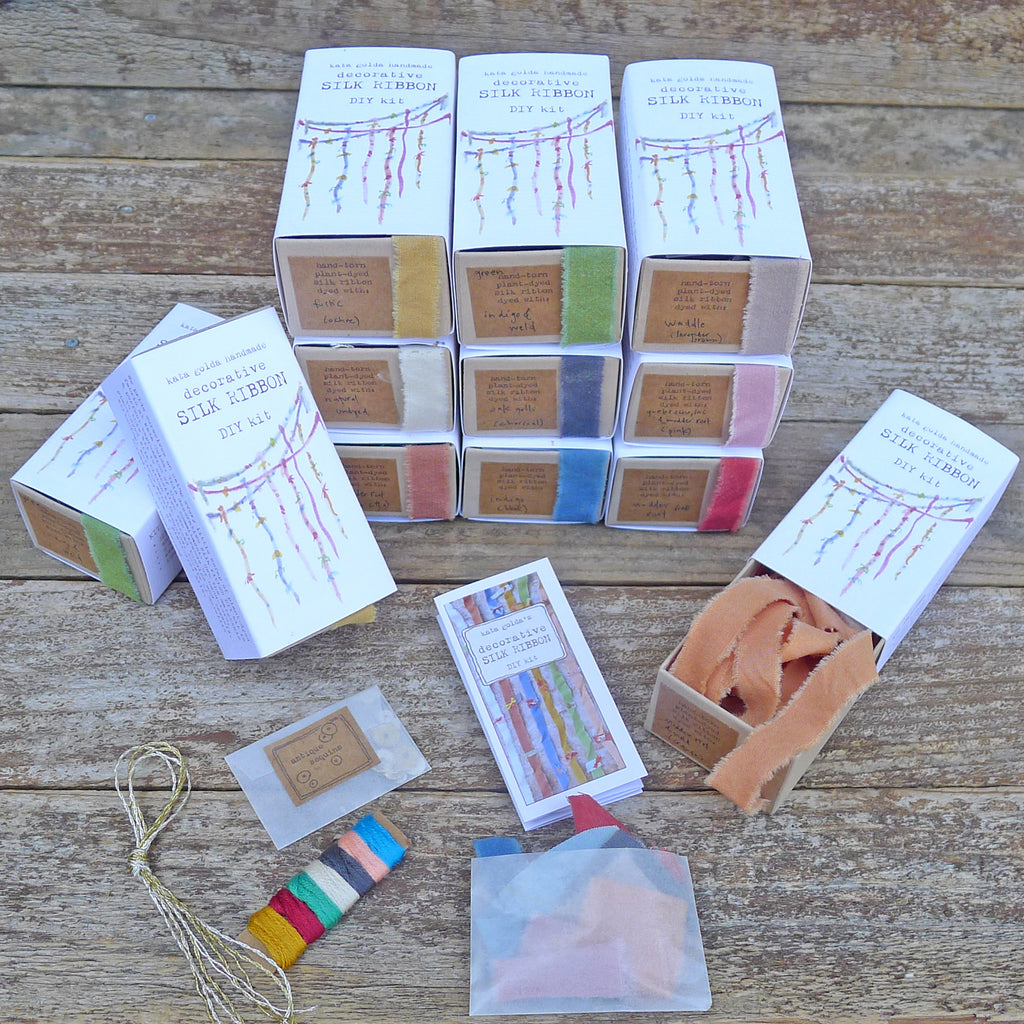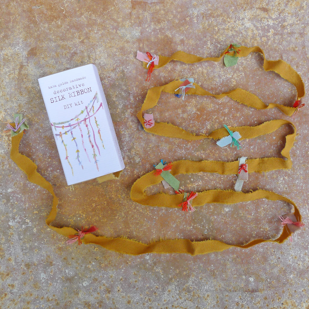 We pride ourselves on using up every scrap of plant-dyed fabric at Kata Golda. This ochre decorative silk ribbon kit is a perfect expression of that commitment.