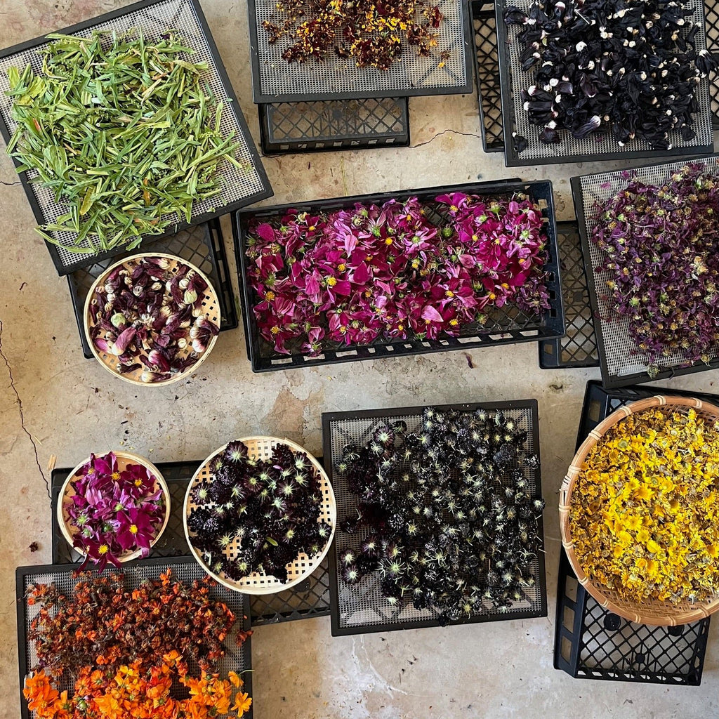 This 5.5 x 7" plant-dyed muslin bag is overflowing with plant-dyed wool felt scraps. These precious trimmings are from wool felt that was dyed in my home dye studio with plants and flowers from my dye garden. I spent my summer coaxing these beautiful colors from the plants, and it was pure magic.