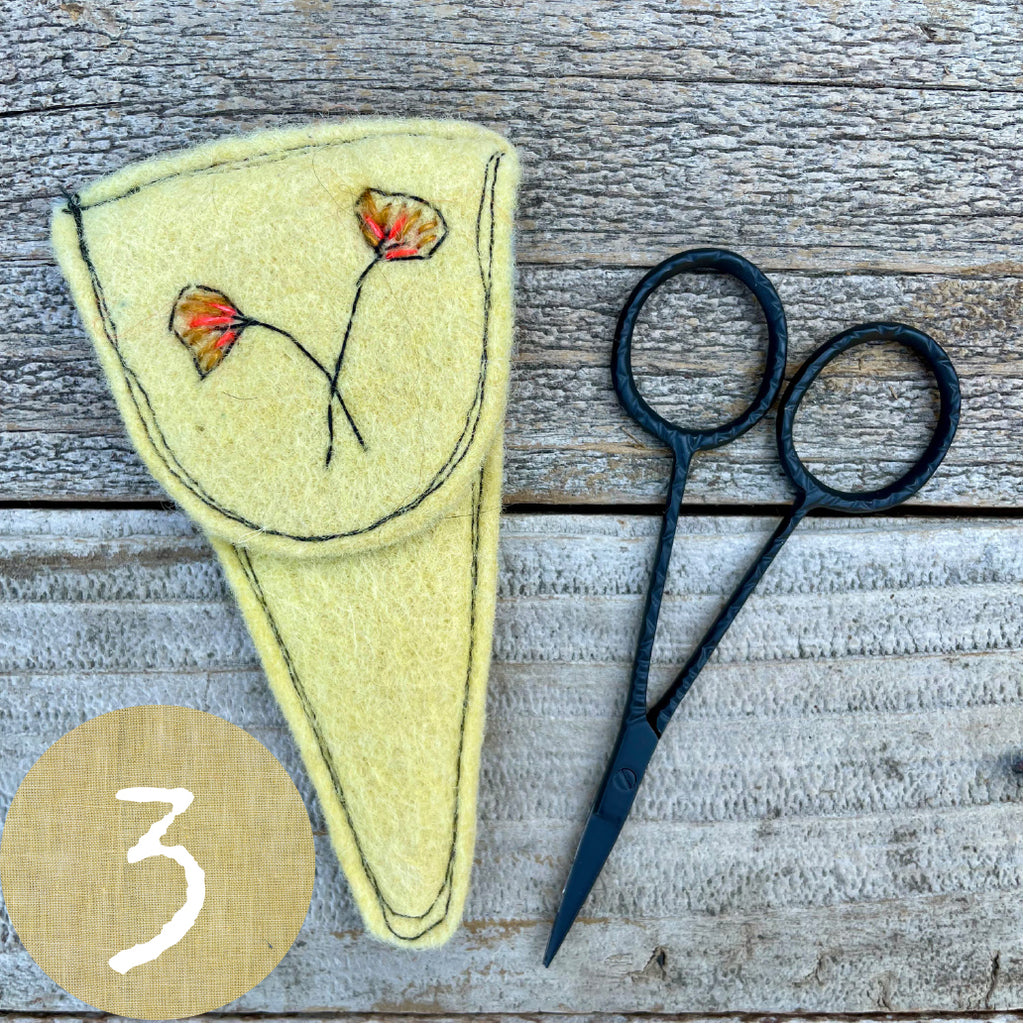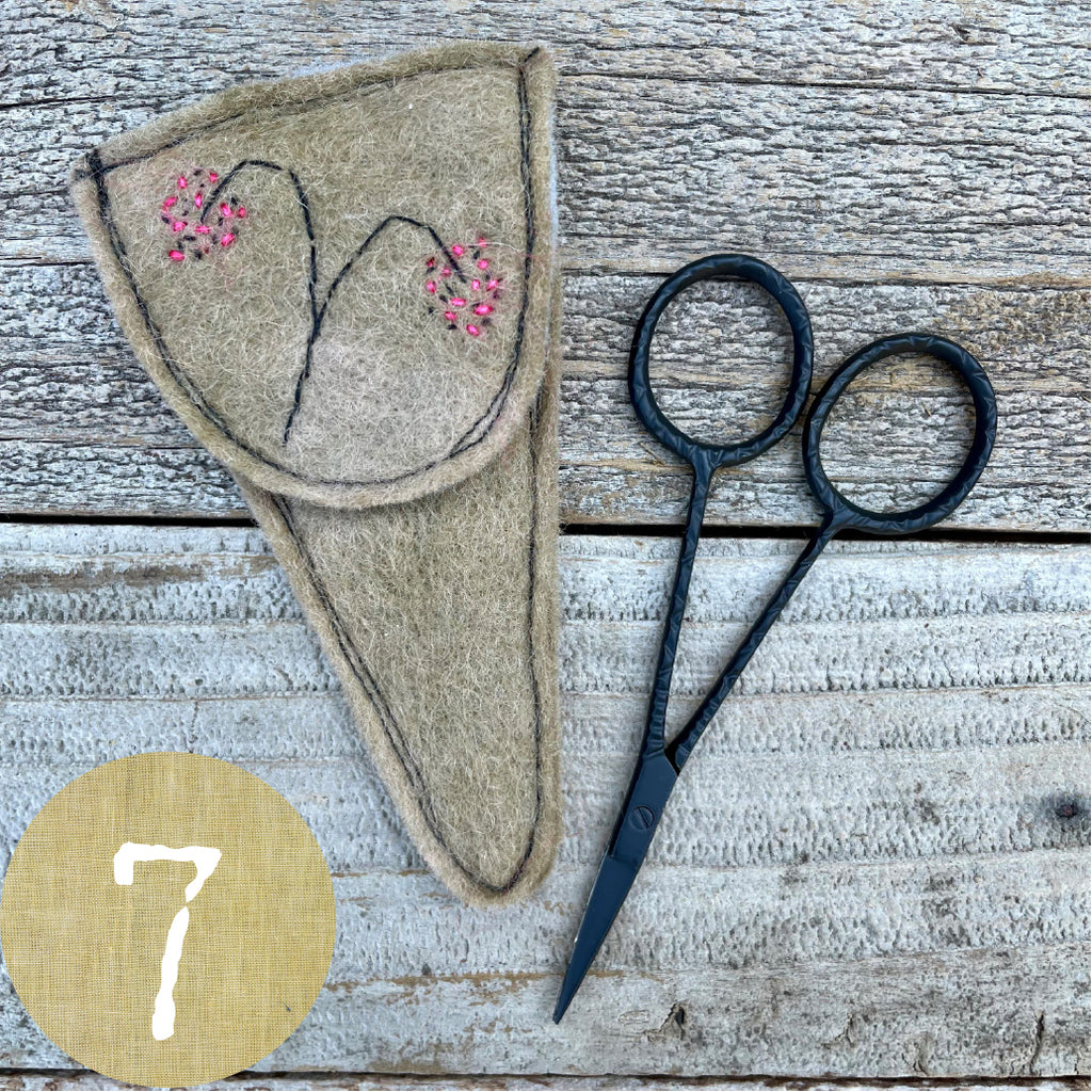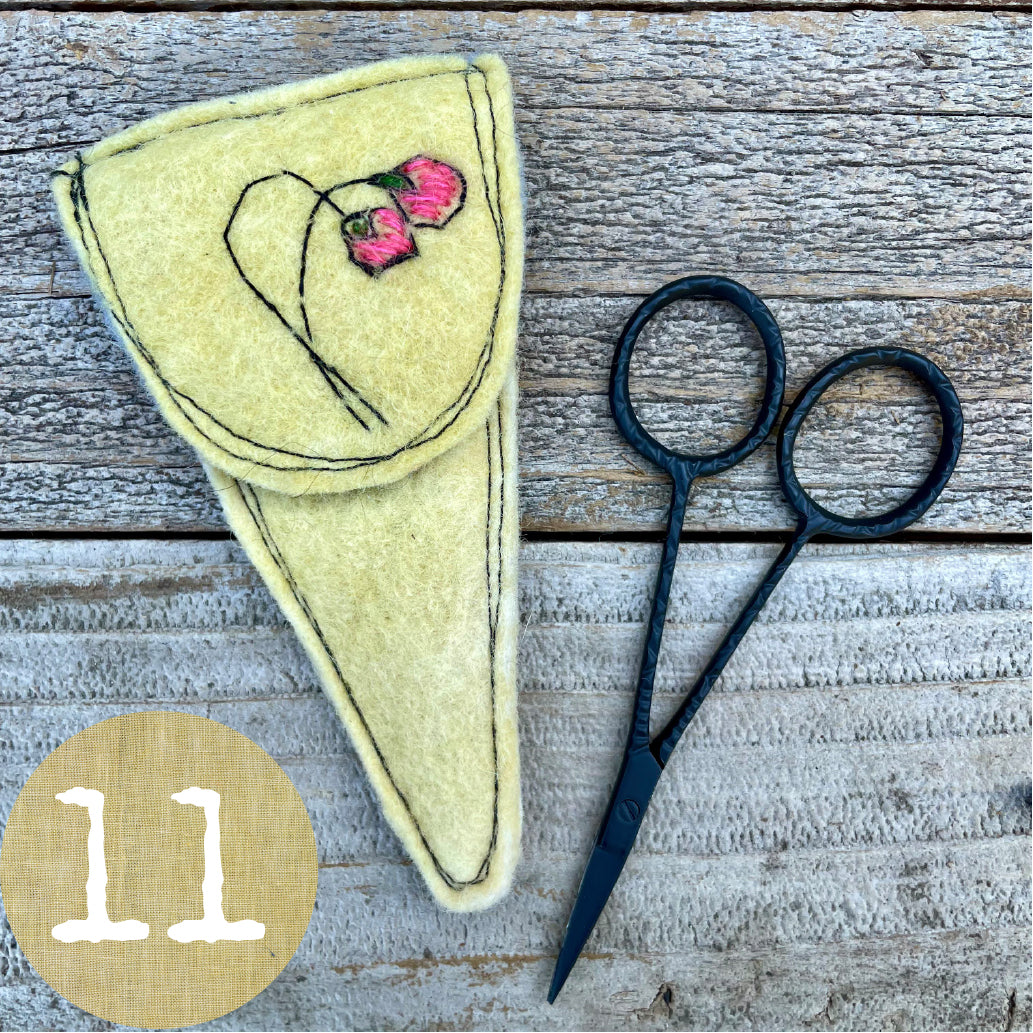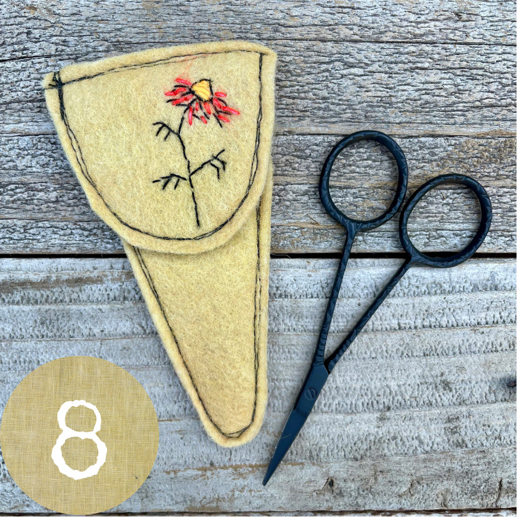 Each wool felt scissor slip features a hand-stitched botanical design hand stitched with silk/mohair from The Lamb & Kid and is machine-stitched out of plant-dyed wool felt. I dyed the felt in my home dye studio with plants and flowers from my dye garden along with additions to the dye pot from Botanical Colors. Slips measure 2.5” across at the top and are 4.5” long. A pair of lovely 3.75” long snips to treasure is included. This is a special gift for anyone who works with thread.