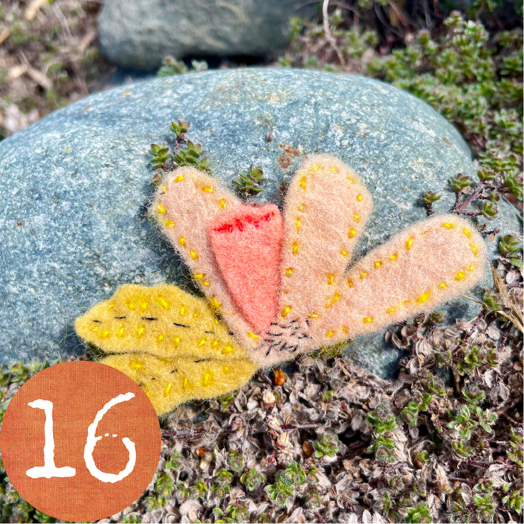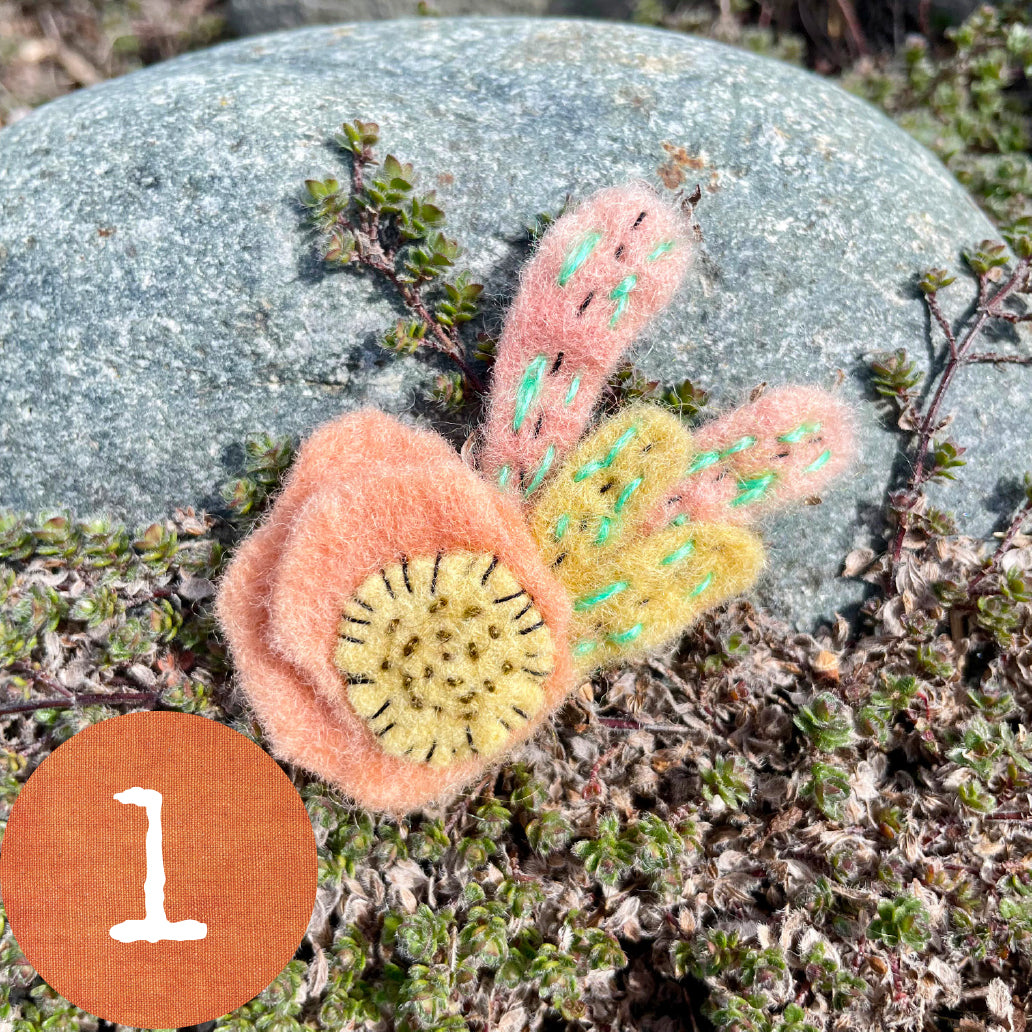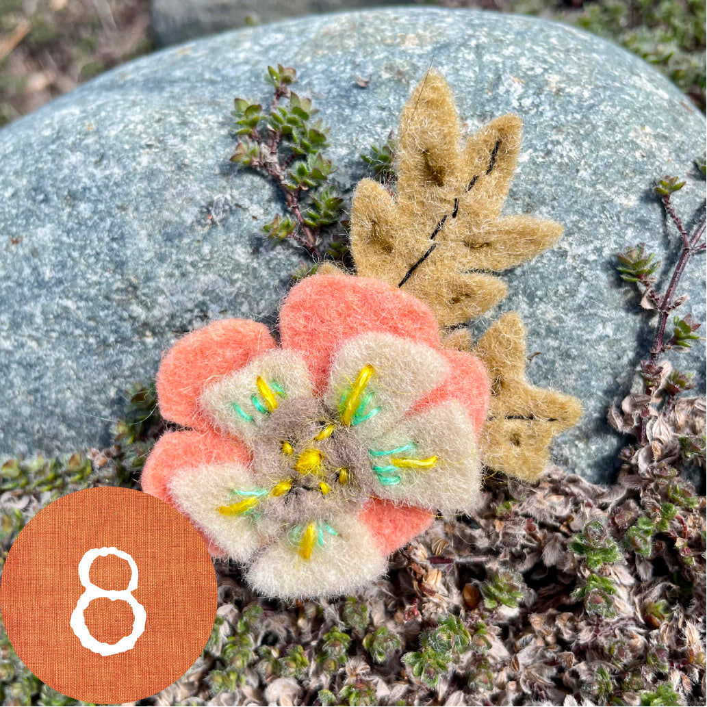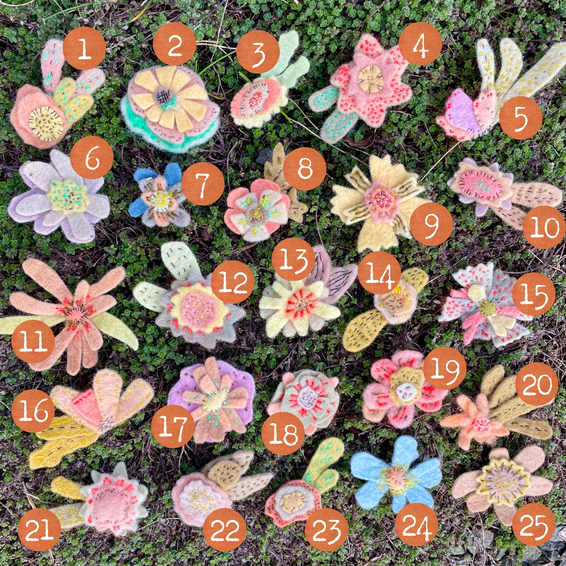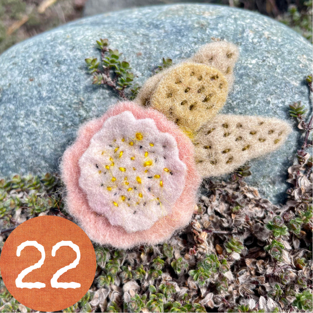 Want to make your own flower pins? Find the free sewing tutorial here and a materials bundle with my plant-dyed wool felt scraps, two collarless safety pins, and a link to the free sewing tutorial.
