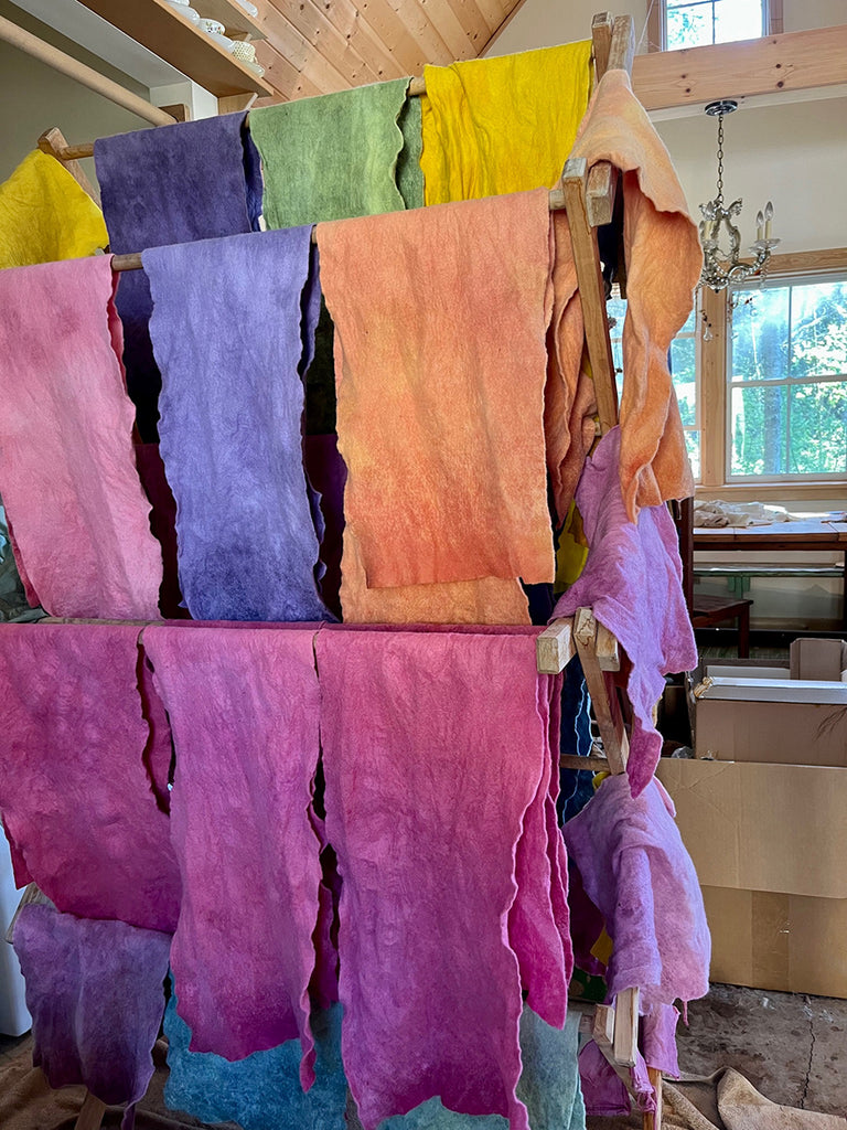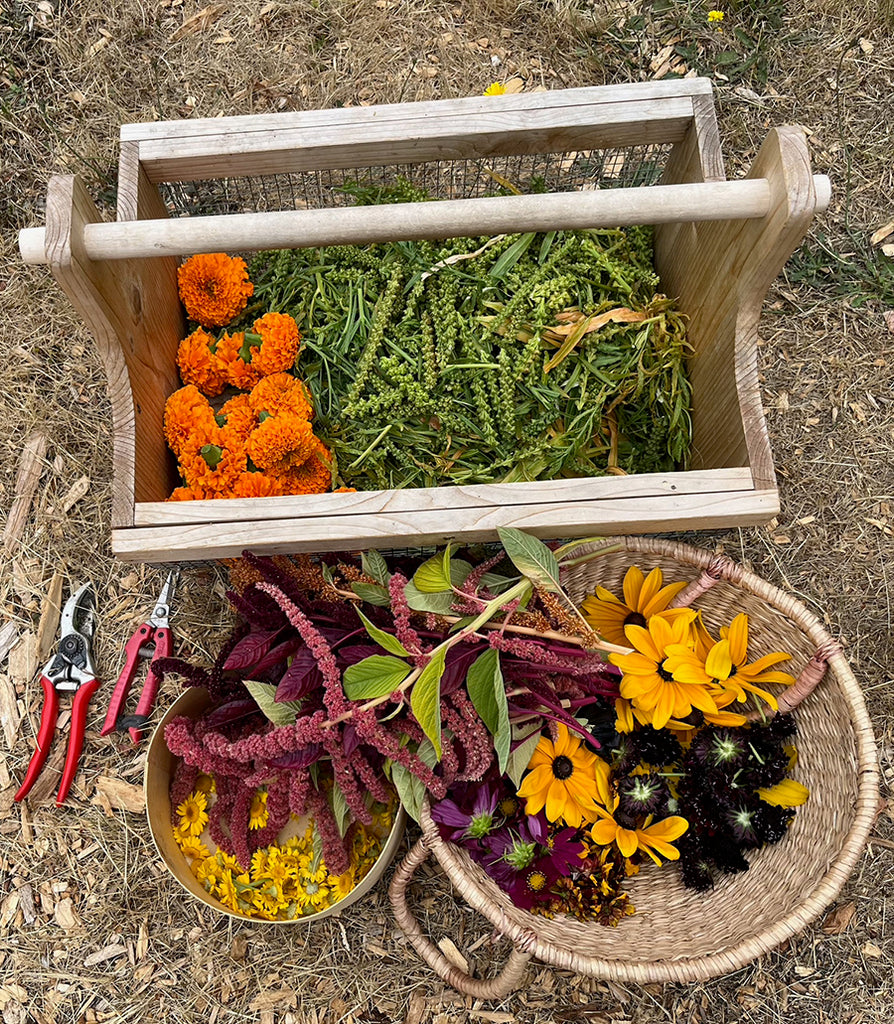 These wool felt flower pins are the perfect way to use up my plant-dyed wool felt remnants. These scraps feel extra precious as I grew the flowers in my dye garden and dyed the felt in my home dye studio. Flower pins are a sweet embellishment for a plant-dyed pocket purse, a tote bag, or a coat.