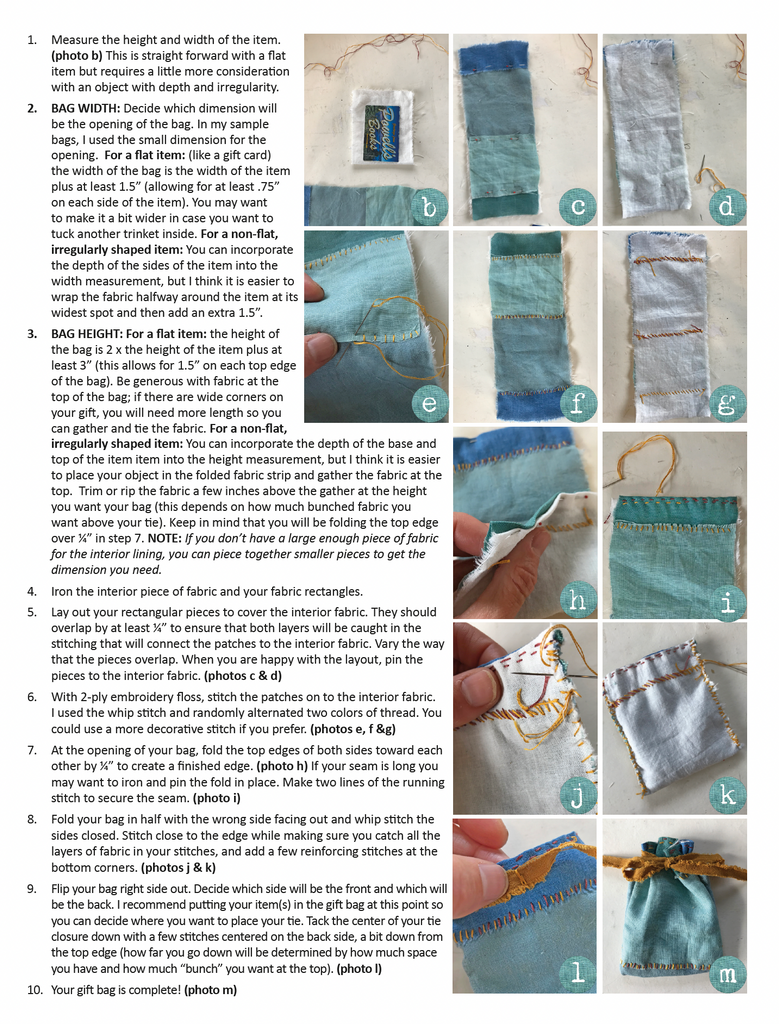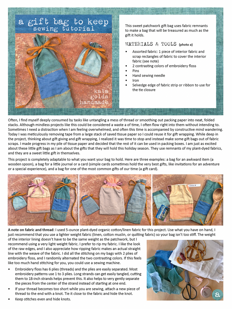 This sweet patchwork gift bag uses fabric remnants to make a bag that will be treasured as much as the gift inside. This project is completely adaptable to what you want your bag to hold.