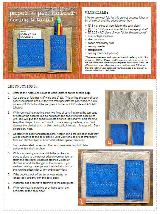 free sewing tutorial: paper & pen holder