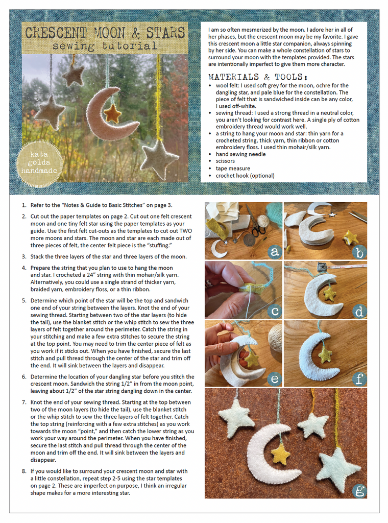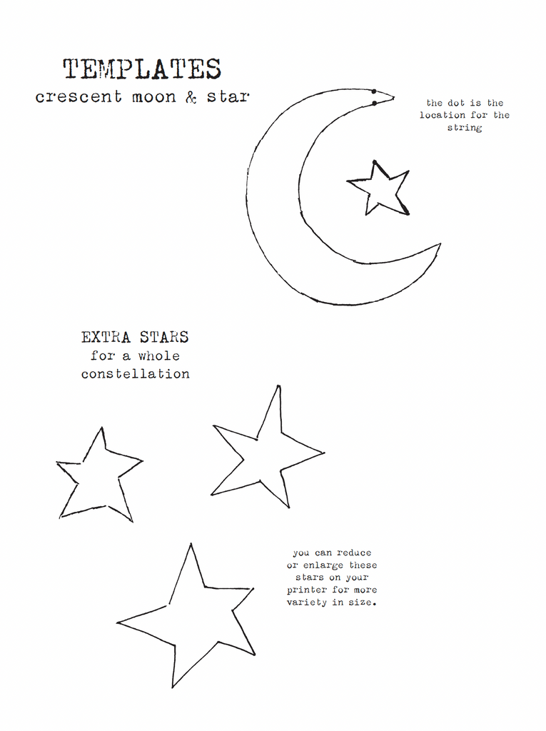 I am so often mesmerized by the moon. I adore her in all of her phases, but the crescent moon may be my favorite. I gave this crescent moon a little star companion, always spinning by her side. You can make a whole constellation of stars to surround your moon with the templates provided. The stars are intentionally imperfect to give them more character.