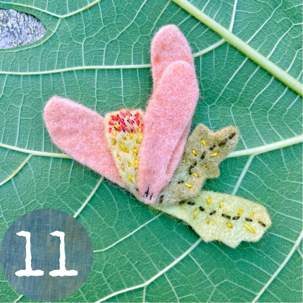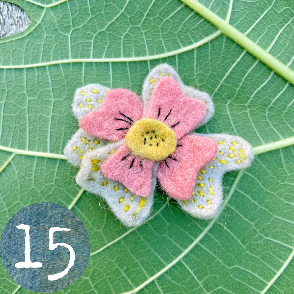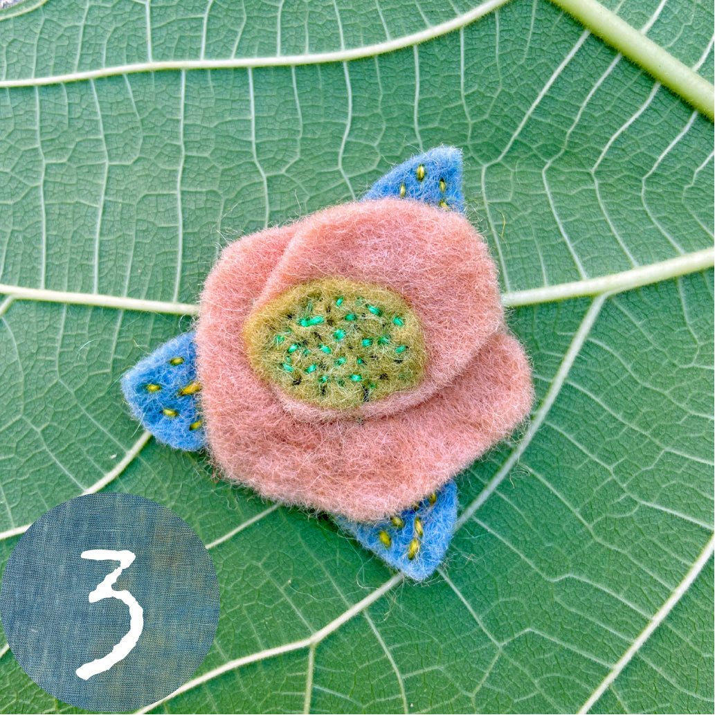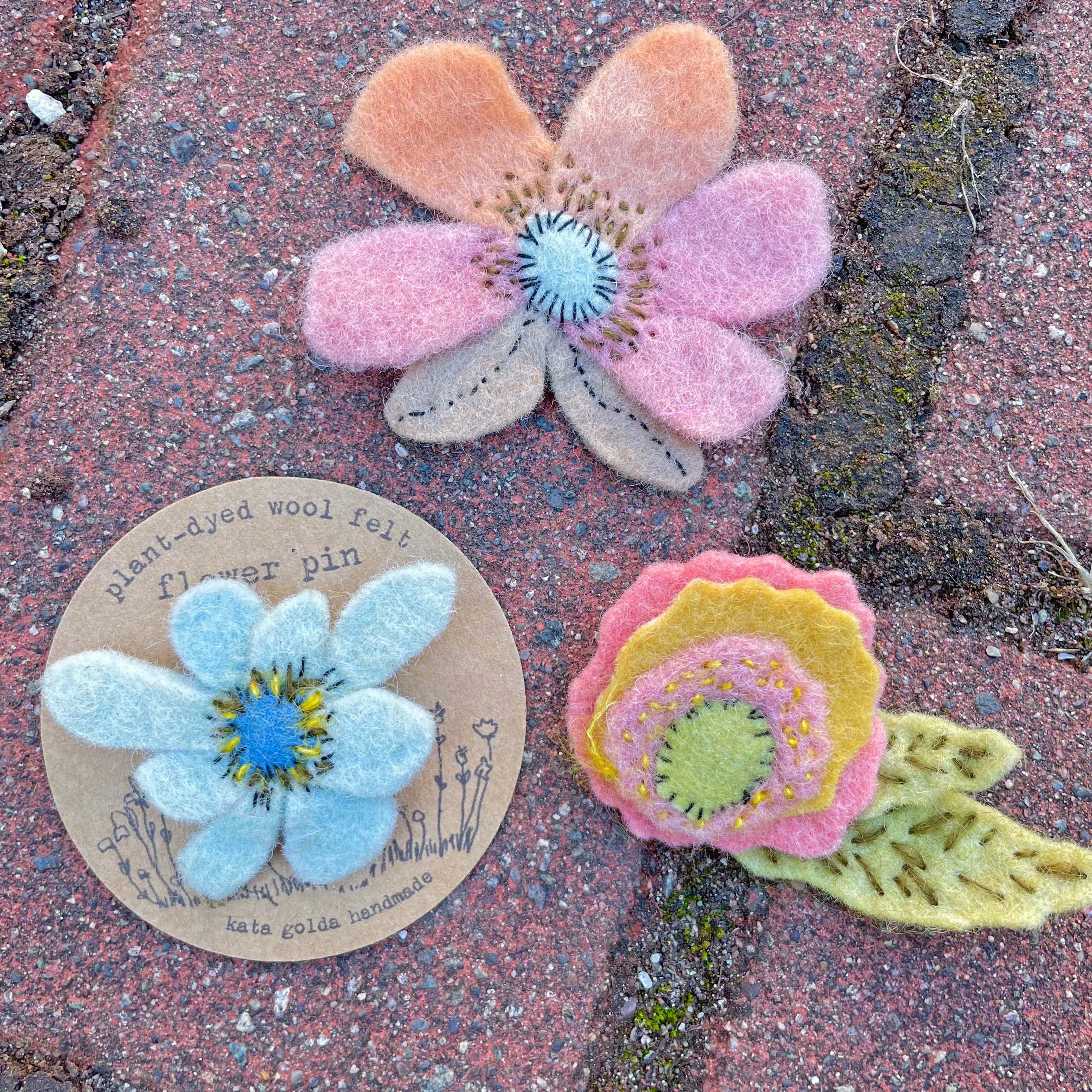 Want to make your own flower pins? Find the free sewing tutorial here and a materials bundle with my plant-dyed wool felt scraps, two collarless safety pins, and a link to the free sewing tutorial.