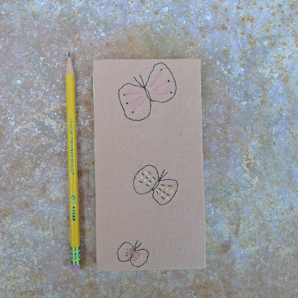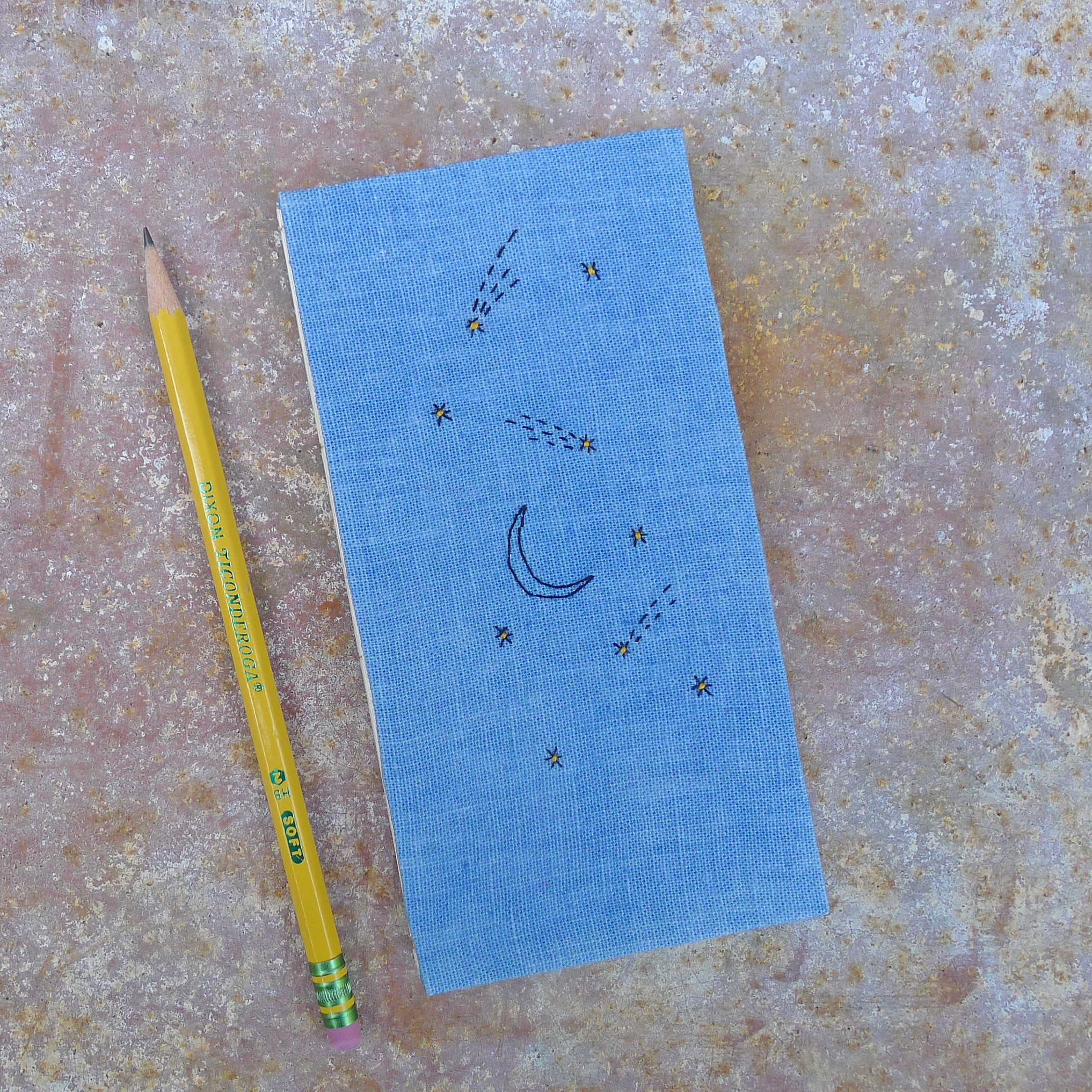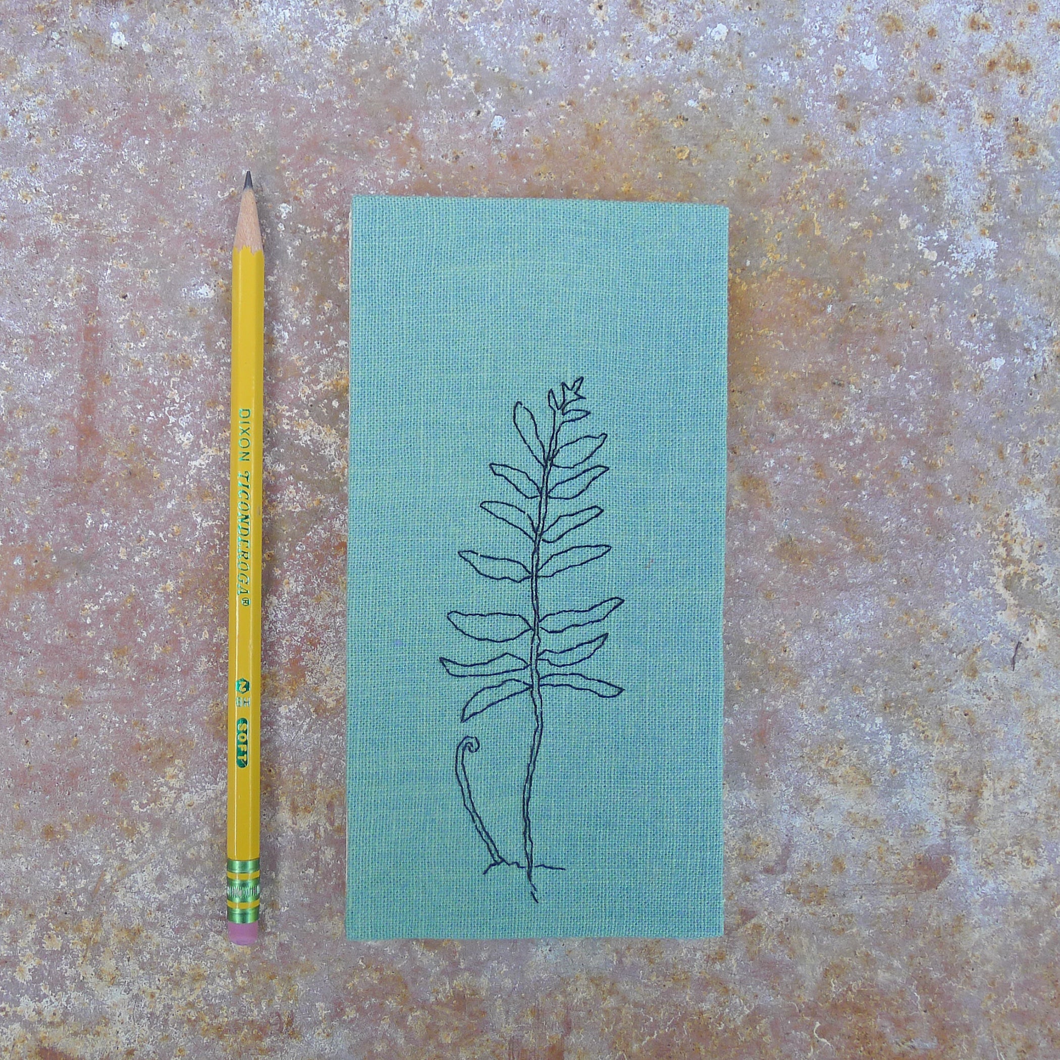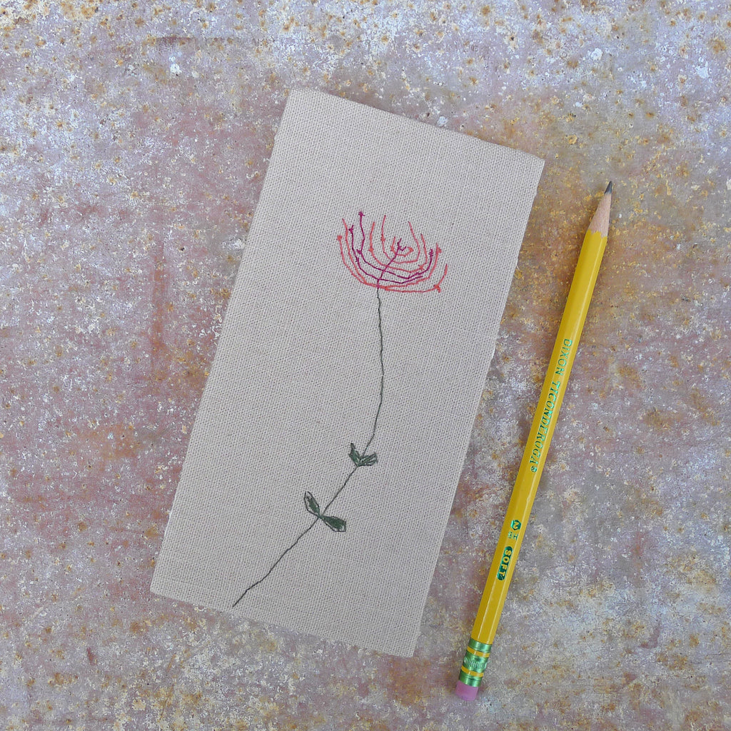 This book is meant to be used. When we have beautiful things made by hand, we are more likely to use them in a meaningful way. I begin by hand-tearing soft white, unlined, acid-free, 80# text paper that is ideal for drawing and writing with pen or pencil. The exposed spine stitching allows the book to lay flat when it is open. This red book is covered with organic cotton/hemp fabric that is plant-dyed with madder root in small batches, so there is variation within each color. The cover features a hand-embroidered heart. Contains 104 pages and measures 3.25 x 6.25”. |